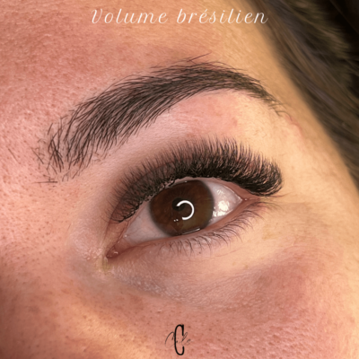 Le volume brésilien est effectué à partir de « cils technologiques » tout droit venus du Brésil, appelés aussi cils Y ou W. Ils permettent de réaliser une pose intense et fournie plus rapidement qu’avec du fait main.